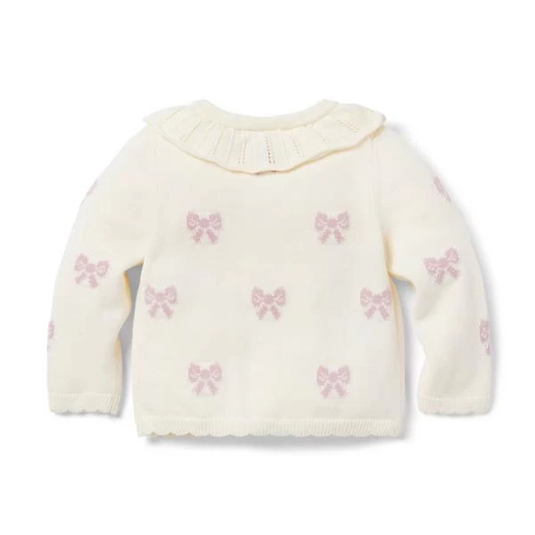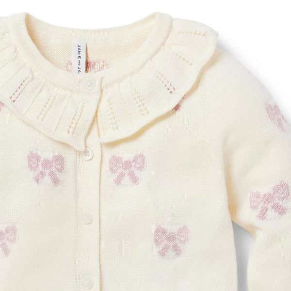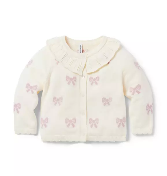 - Soft, cozy and wrapped up with bows. Our intarsia-knit cardigan made in soft combed cotton with a ruffle collar and scalloped details for a special touch.