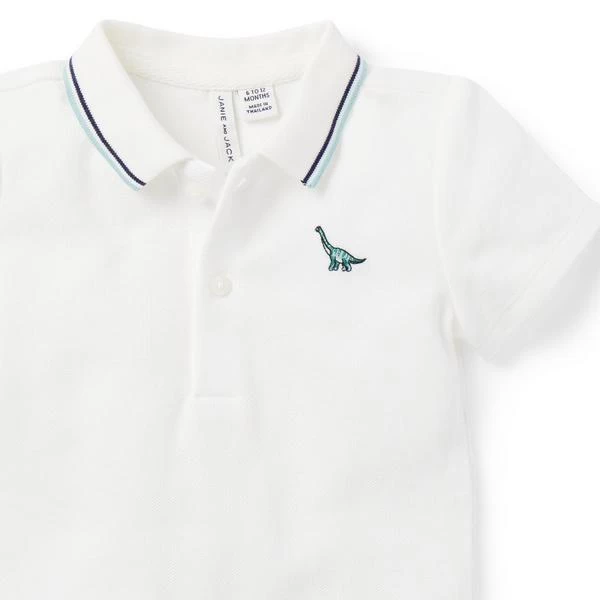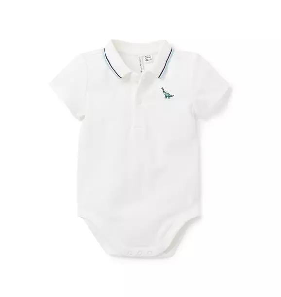 - A preppy polo with prehistoric style. Our pure cotton pique bodysuit features an embroidered dinosaur and tipping at the collar for a special touch.