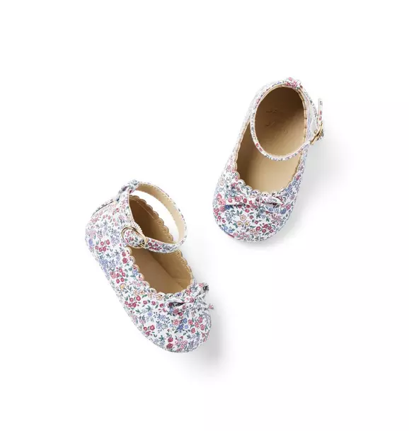 - A classic look with little bows and scalloped details, this floral flat is perfect for first occasions or just because.