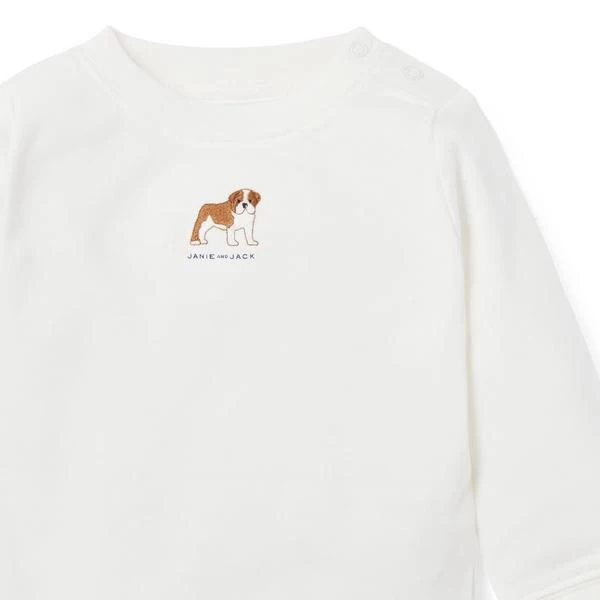 - Baby’s most versatile essential, this cotton bodysuit with an embroidered bulldog is ready to wear with any outfit.