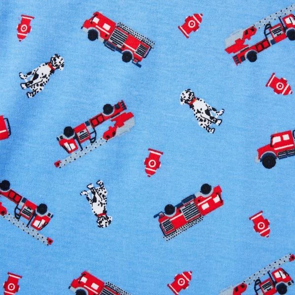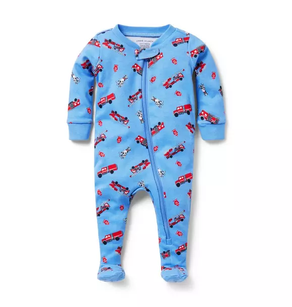 - Good things come to those who dream. Our feel-good soft, pure cotton PJ in a one-of-a-kind fire truck dog print is just right for good nights with their best friend. With even more good things, from its cozy footed style to its easy zip front.