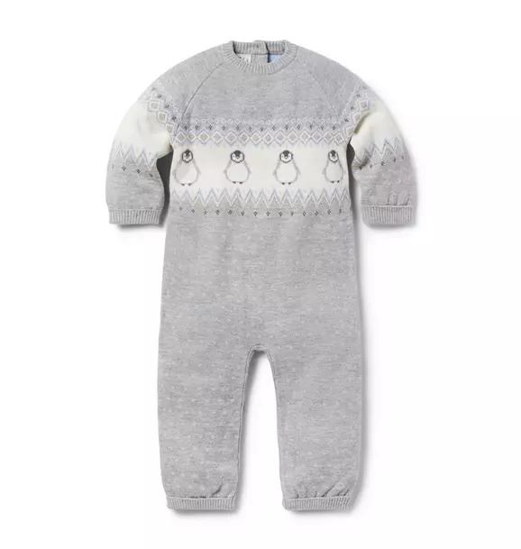 - So soft and cozy, our Fair Isle one-piece detailed with penguins will keep baby warm on first winter outings.