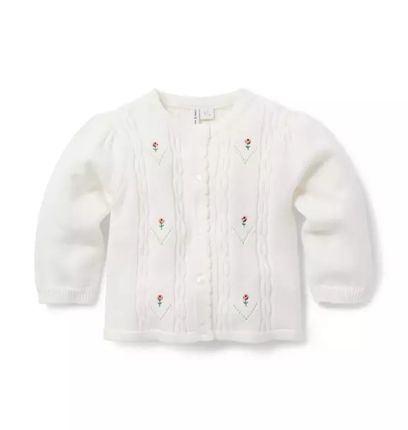 - The perfect layer over baby’s next look, this soft sweater with pointelle details and embroidered flowers for cozy style wherever they go.