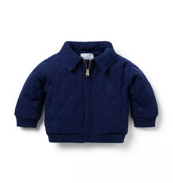 - A soft layer for stylish first strolls, our quilted bomber jacket with ribbed details and an easy zip front.