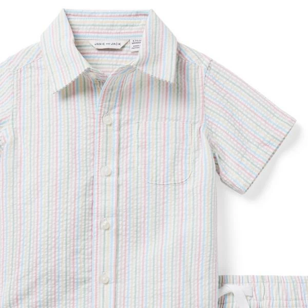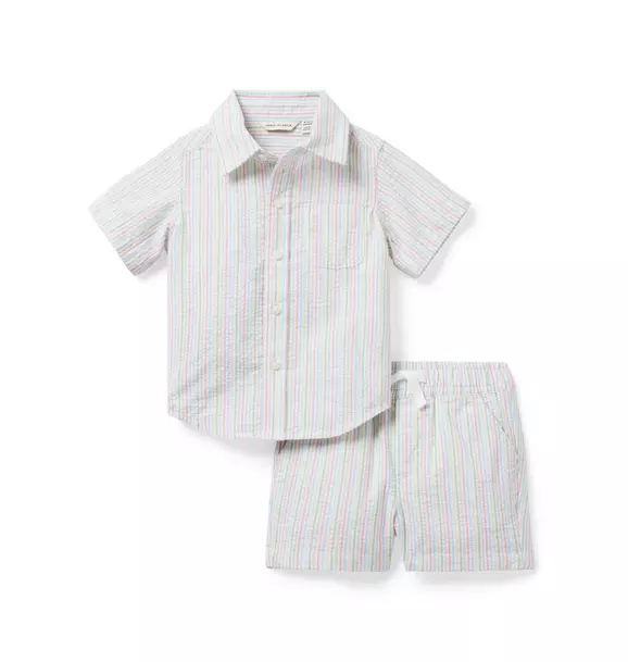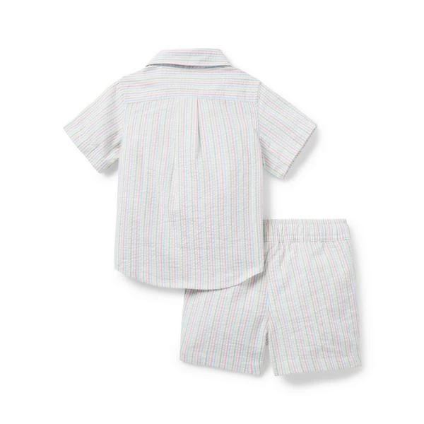 - The perfect short set to line up with warmer days. In light and airy seersucker with allover stripes, it’s a breezy choice for baby’s sunny firsts.