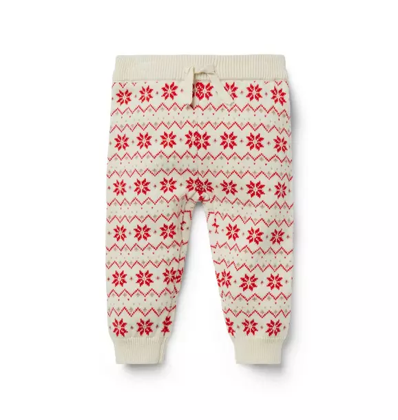 - Cozy is calling and so are these soft sweater pants. In pure combed cotton with Fair Isle snowflakes, they’re perfect for first holidays and family moments.