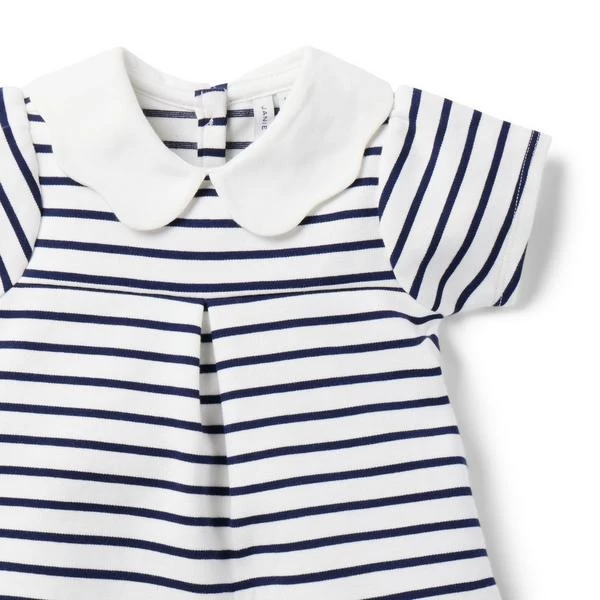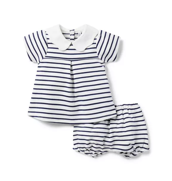 - For effortless style that’s always a match, reach for this soft set with a scalloped collar and allover stripes.