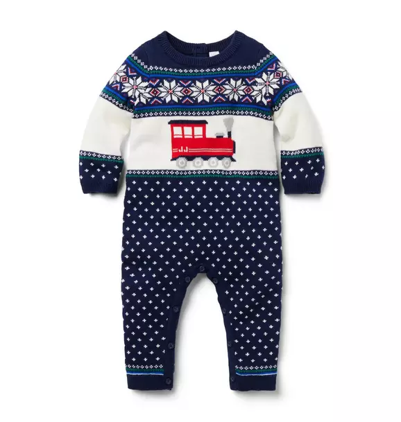 - Bring holiday style home with our soft sweater one-piece. Designed in pure combed cotton with an intarsia-knit train and Fair Isle details, it’s ready for baby’s first Christmas and cozy family moments too.