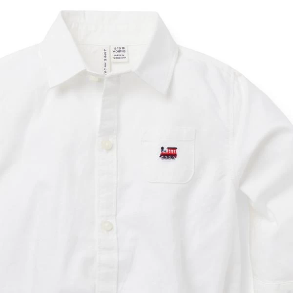 - Next stop, the holidays. Our classic oxford bodysuit is always a favorite with its embroidered train, mini chest pocket and crisp collar.