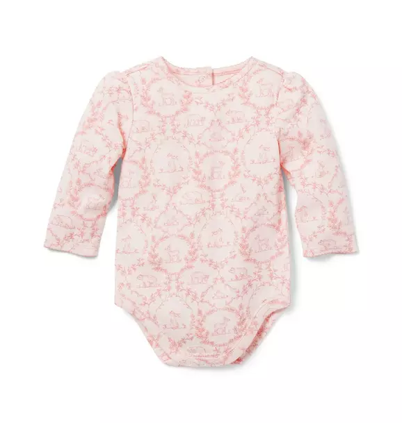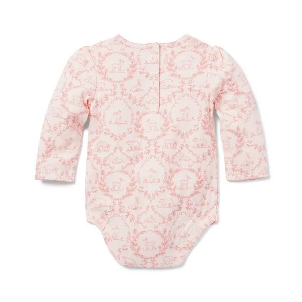 - Our forever favorite bodysuit in soft, pure cotton with a woodland toile print and picot edge detailing we love.