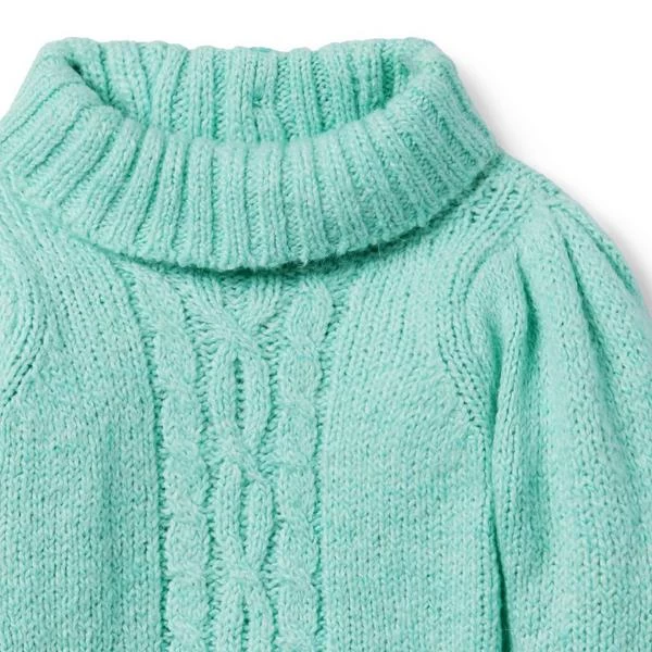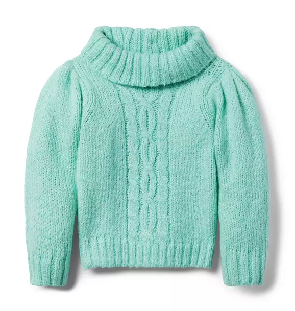 - A favorite for crisp days, our marled cable knit sweater features puff sleeves and a fold-over turtleneck to keep them cozy.