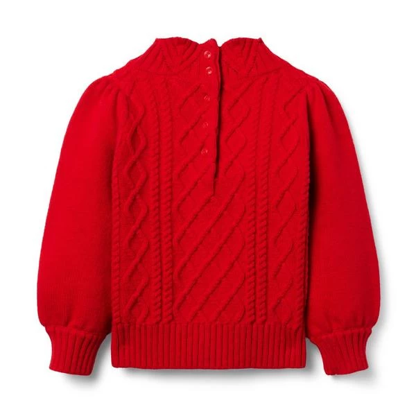 - A close-knit favorite for the holidays, this soft sweater with cable details, a scalloped neck and puff sleeves.