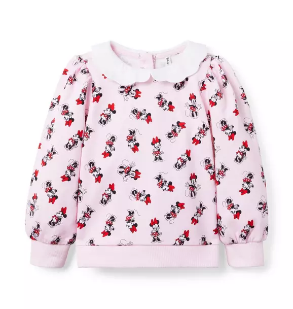 - Disney’s Minnie Mouse brings the fun to our limited edition sweatshirt. In soft French terry with an exclusive print, scalloped collar and puff sleeves too.