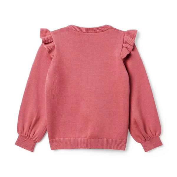 - A soft sweater for days with their best friend. Detailed with an intarsia-knit dog, ruffled shoulders and a bow detail too.