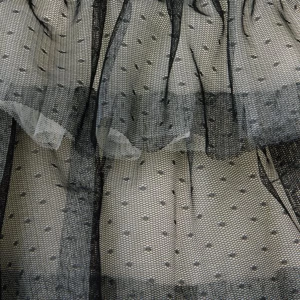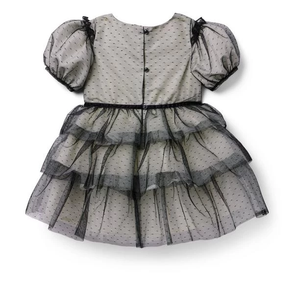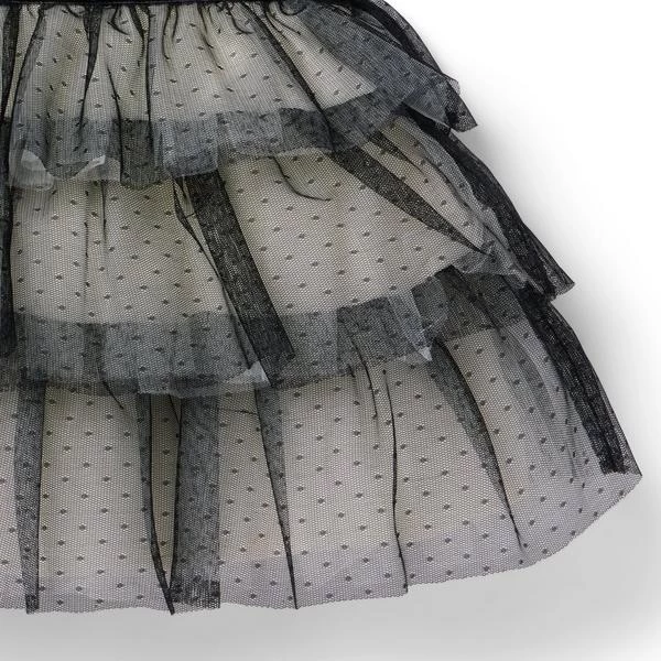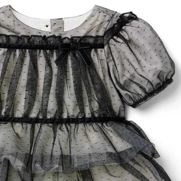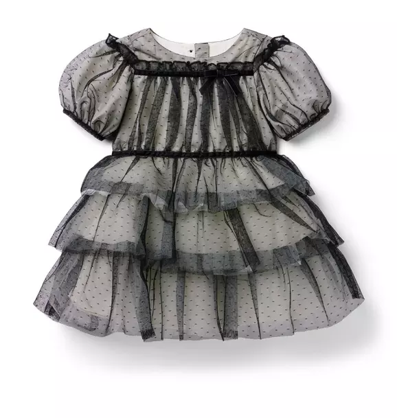 - Fancy details take the spotlight on our mesh dot tulle dress. Featuring velvet ribbon trim, puff sleeves and a tiered ruffle skirt for extra flounce.