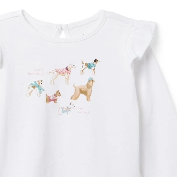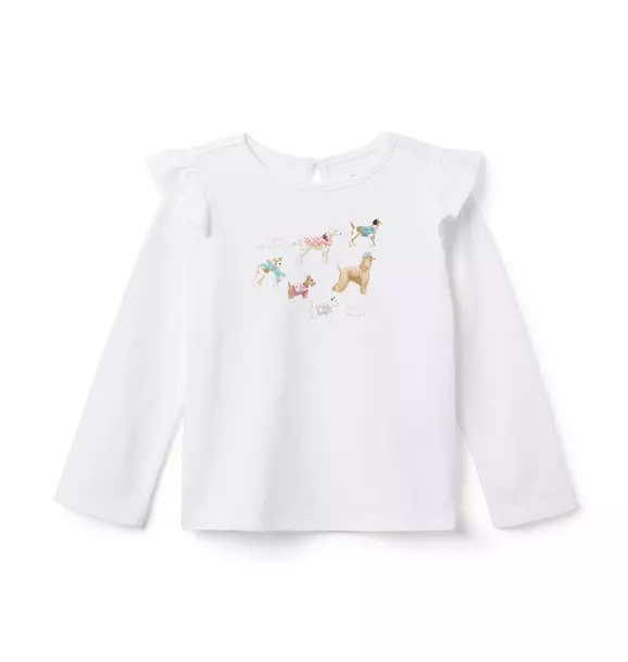 - Take this soft jersey tee for a stroll with their best friends. Detailed with six sweater-clad dogs, plus ruffled shoulders and an appliqued bow for best-in-show style.