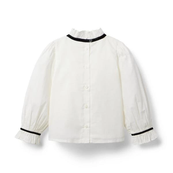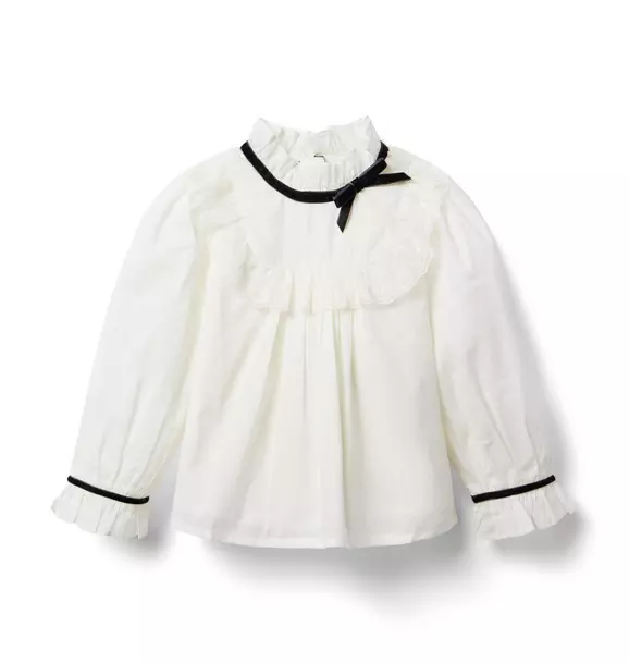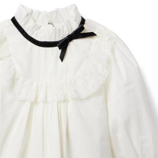 - All the details we love for this classic top, from its lace trim to its velvet ribbon bow and ruffled collar and cuffs. In pure cotton batiste, it’s ready to pair with all their favorite looks.