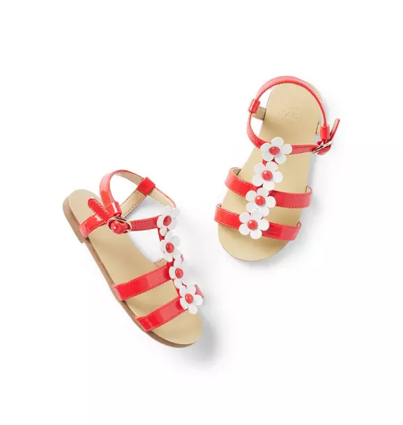 - Make every step bloom with theses strappy sandals detailed with a row of 3D flowers. Featuring an adjustable buckle closure for the perfect fit.