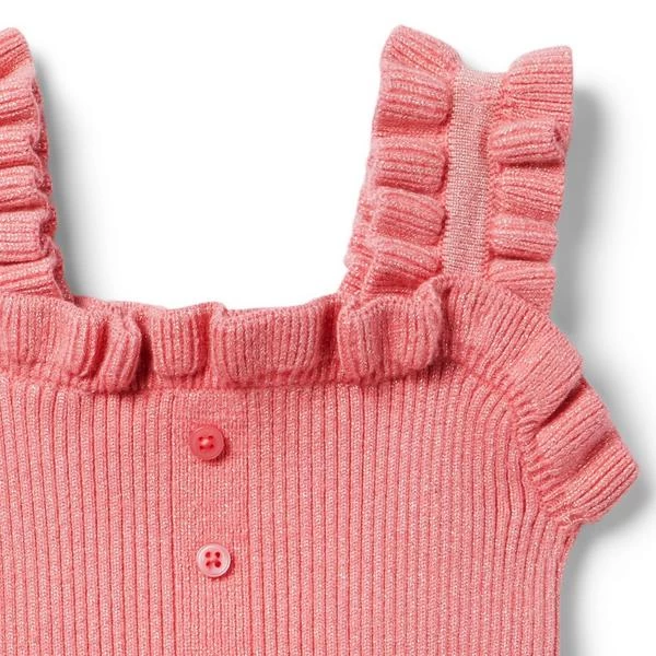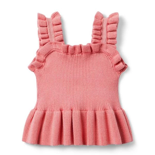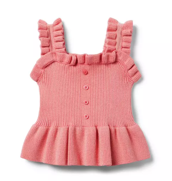 - Sunny style meets softness in our ribbed sweater top. With ruffle straps, a peplum hem and button front details we love.