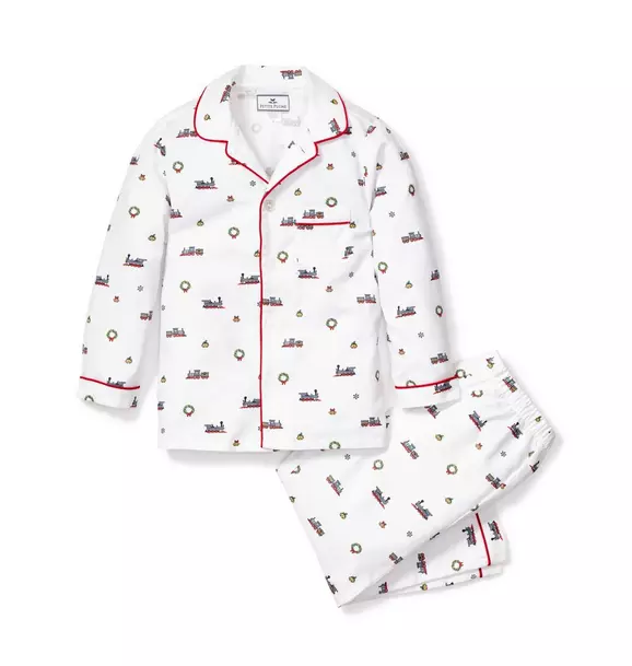 - They’ll be tucked in love with this festive pajama set from our friends at Petite Plume. In a classic holiday train print and brushed for added softness that gets cozier after each wash.