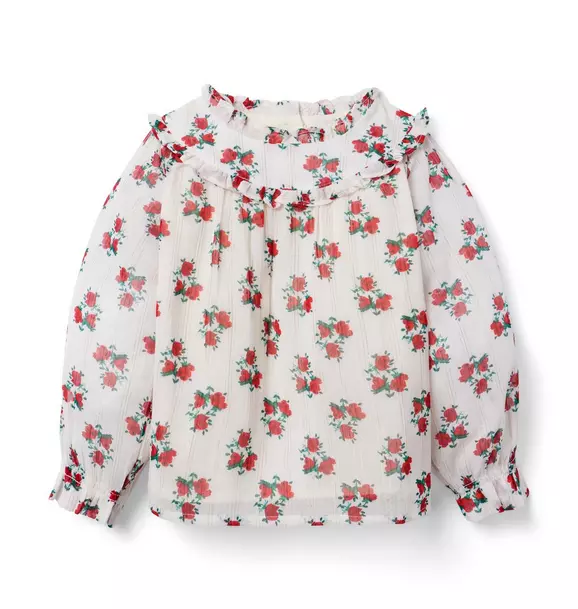 - In light and airy chiffon, our rose top with ruffle details and metallic stripes is perfect for holiday occasions or anytime.