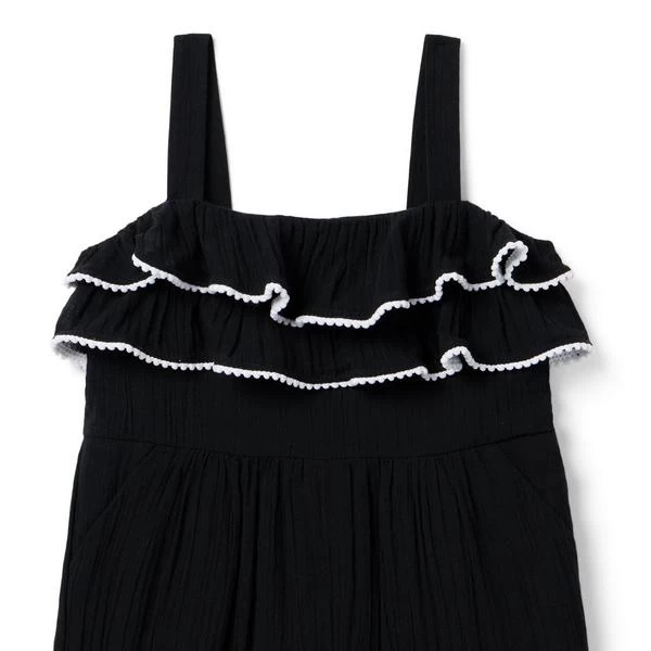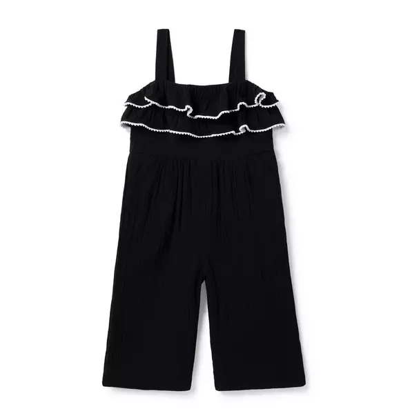 - The one-and-done outfit we love? This flowy jumpsuit in crinkle gauze with double ruffles and pom pom trim. Itβs perfect for getaways, or anytime.