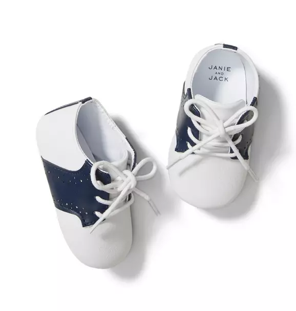 - Step up his look with our classic saddle crib shoe designed with tonal laces. It’s perfect for baby’s next dressed-up moment.