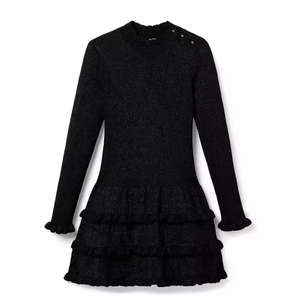- Sparkle and shine in our soft ribbed dress. With a tiered ruffled skirt, scalloped collar and gold-tone shoulder buttons—it’s a best-dressed moment for every festive occasion.