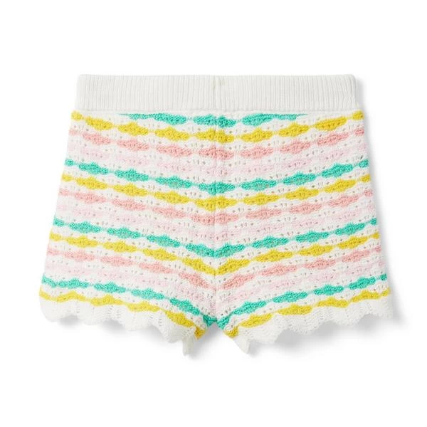 - Our soft crochet shorts with pastel stripes are perfect for sunny days. Featuring a scalloped hem and a little bow detail too.