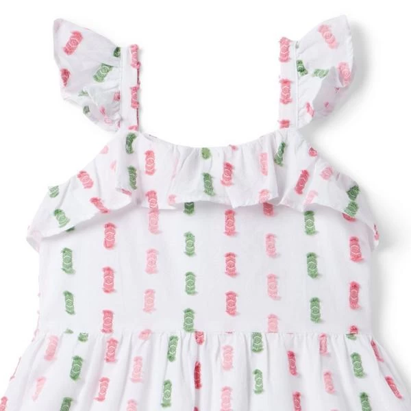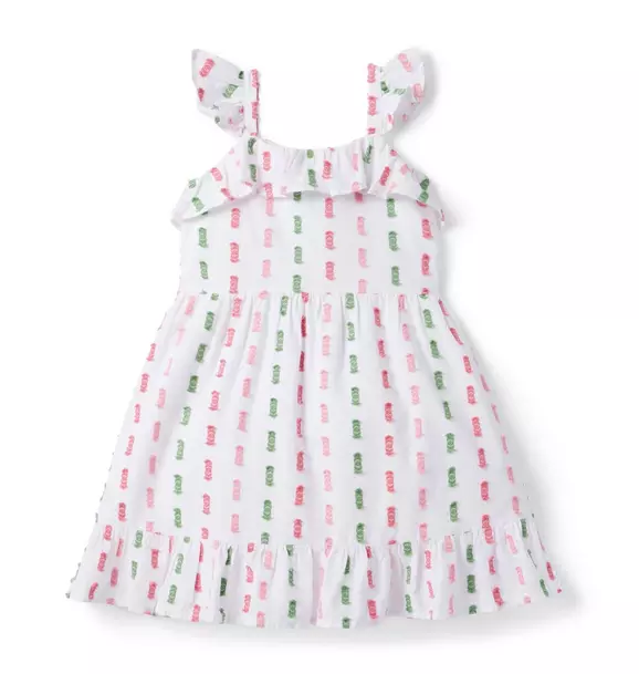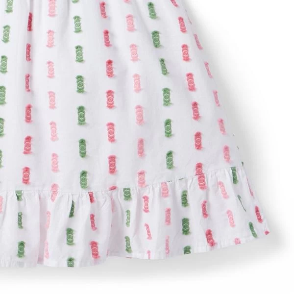 - For their next sunny occasion, or just because, this pure cotton jacquard dress with colorful textured embroidery. Plus, ruffle details for a little extra frill.