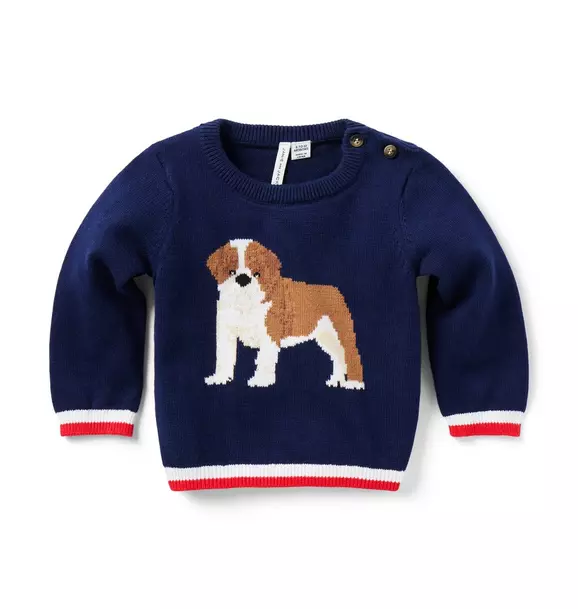 - Their best sweater forever, detailed with an intarsia-knit bulldog puppy and shoulder buttons. It’s begging to be taken home.