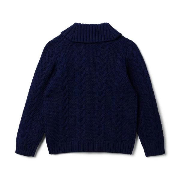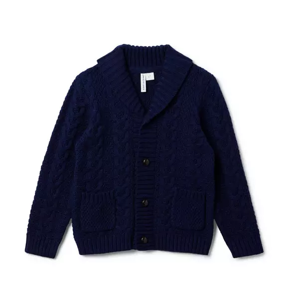 - The perfect layer for cooler days, this cable knit cardigan has patch pockets and a ribbed shawl collar, plus faux leather buttons.