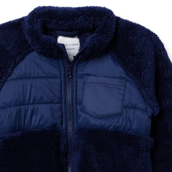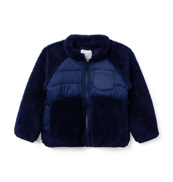 - Our fleece jacket will keep them warm on any adventure. Featuring quilted nylon details and a mock neck collar, plus pockets for all their favorite finds.