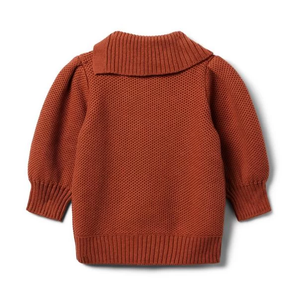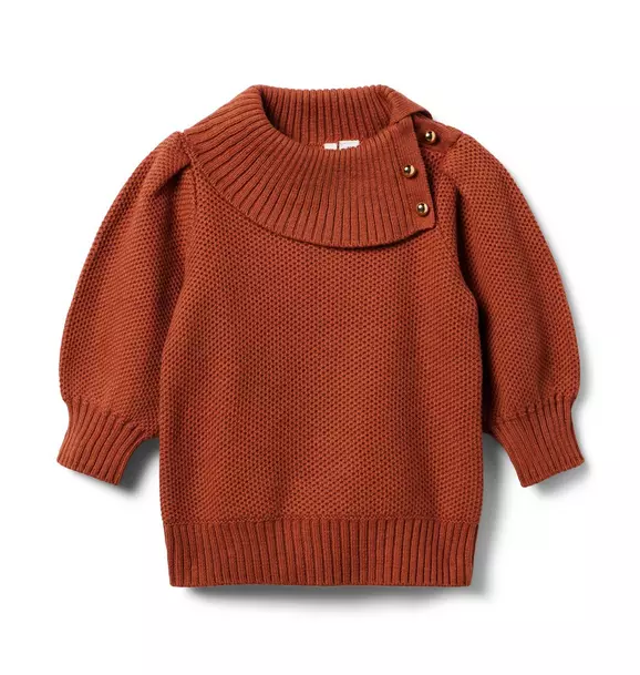 - Our close-knit favorite, this textured sweater with ribbed details, a fold over collar, and gold-tone shoulder buttons.