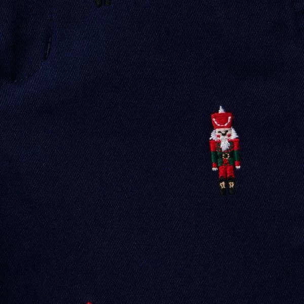 - Our soft stretch pant with holiday charm thanks to allover embroidered nutcrackers. Features front and buttoned back pockets for the little things.
