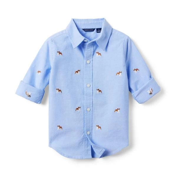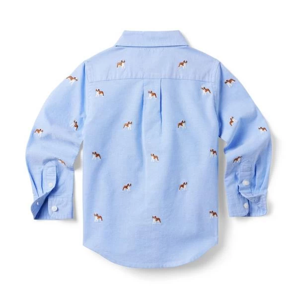 - Everyone’s best friend? This oxford essential with allover embroidered bulldogs and tailored details for dependable style, no matter where the day takes them.