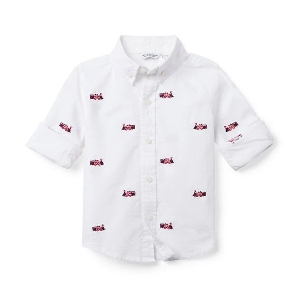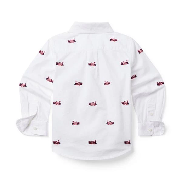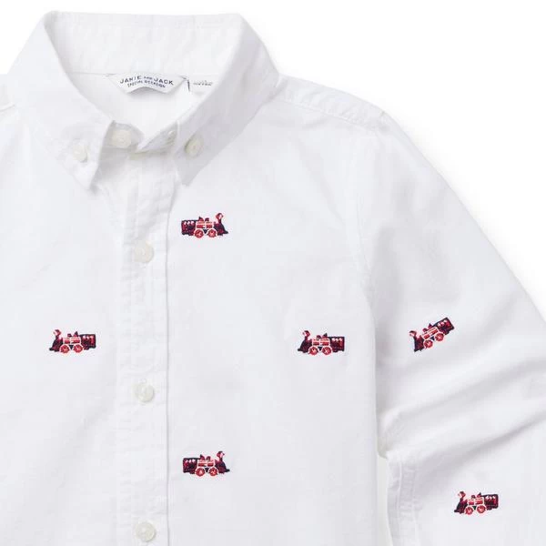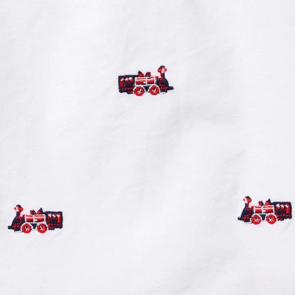 - Our tailored shirt adds holiday charm to any outfit with allover embroidered trains. Perfect for festive celebrations or any occasion.