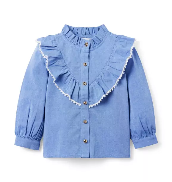 - Classic with a little country charm, our pure cotton top features ruffle details, trimmed with crocheted lace. Plus, gold-tone buttons to finish the look.