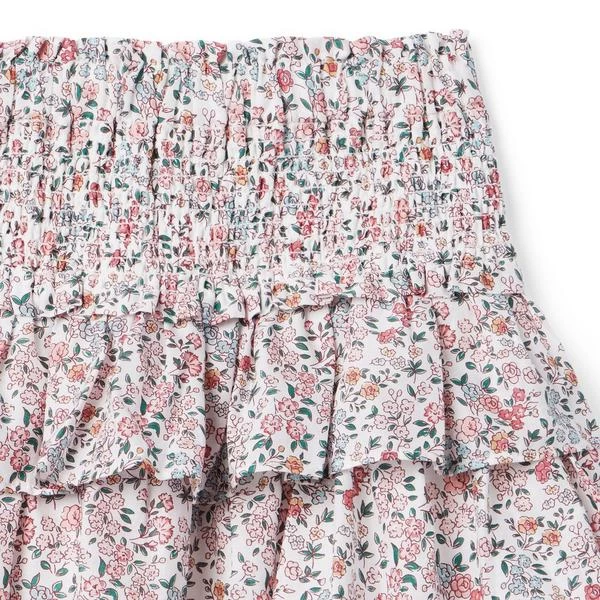 - A floral favorite, this pure cotton skirt with a stretch smocked waist and double ruffle, just for the frill of it.