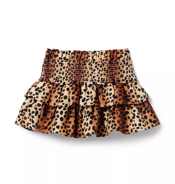- For spot-on style, our leopard print twill skirt with a stretch smocked waist and double ruffle, just for the frill of it.