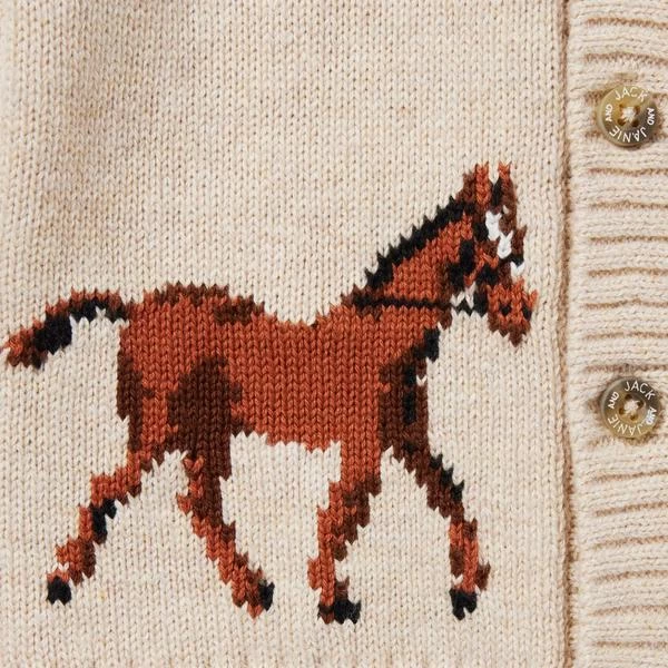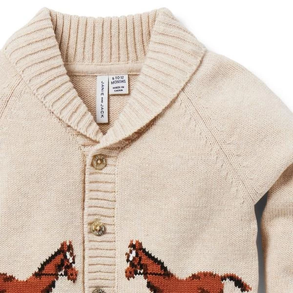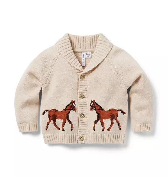 - Layer up—our intarsia-knit cardigan is ready for rocking horses and first pony rides. Made in soft combed cotton with ribbed details and a shawl collar for a preppy touch.