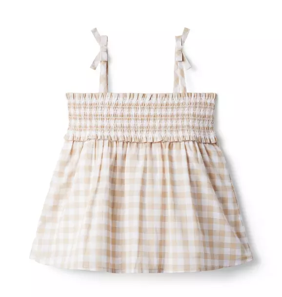 - For picnics, parties and everything in between, our gingham top with bow straps and stretch smocked detailing checks all the right style boxes.