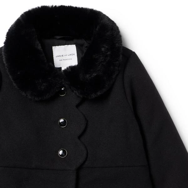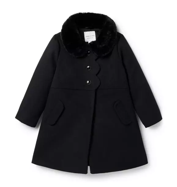 - Every occasion feels extra fancy in our faux fur collar coat. With scalloped detailing and a crisp pleat in the back, it’s a standout look we love.