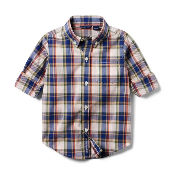 - Pure cotton and plaid make this tailored favorite just right for any occasion. With details to love like roll cuffs and a chest pocket.