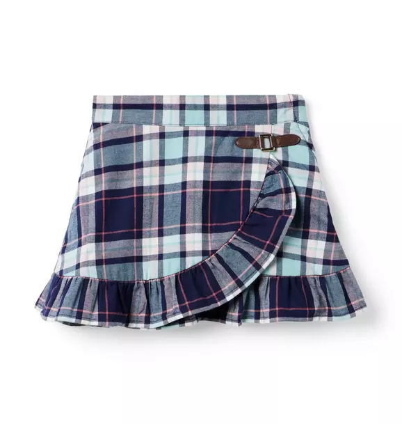 - Preppy plaid with equestrian flair, our faux wrap skirt features a ruffle hem and a bridle bit buckle detail, all in soft twill.