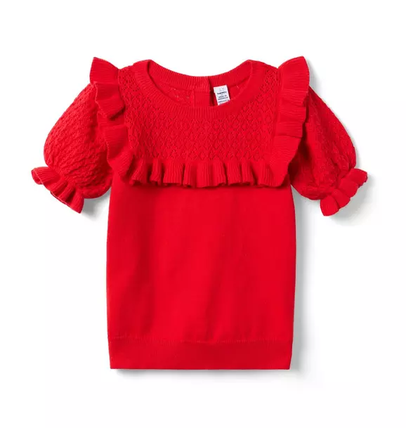 - The perfect piece to pair with crisp days? Our soft sweater top with crochet detailing, puff sleeves and ruffle trim.