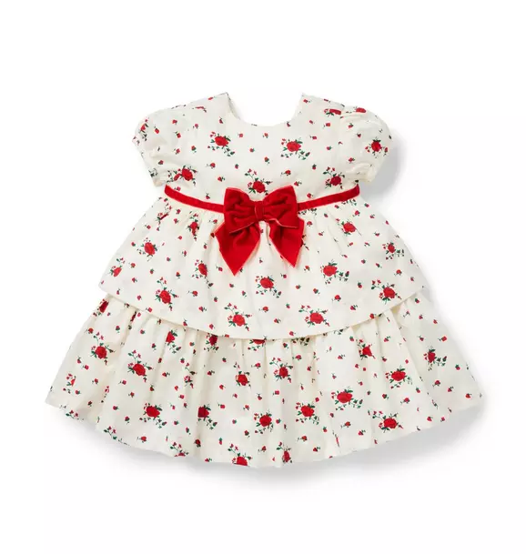 - Wonder and roses, all wrapped with a bow. Our soft sateen dress has all the details we love, from the velvet sash to the tiered skirt with a little tulle underlayer. Perfect for baby’s first Christmas or any occasion.