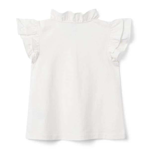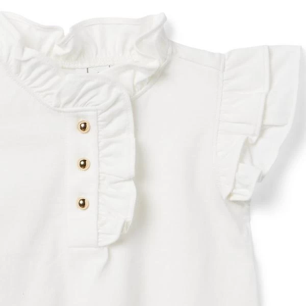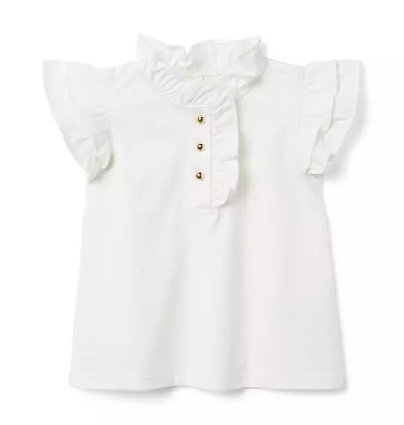 - All the ruffles for our soft jersey top, from the double ruffle sleeves to the ruffle collar. Plus, gold-tone buttons for the finishing touch.
