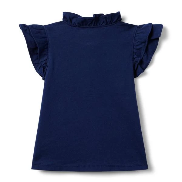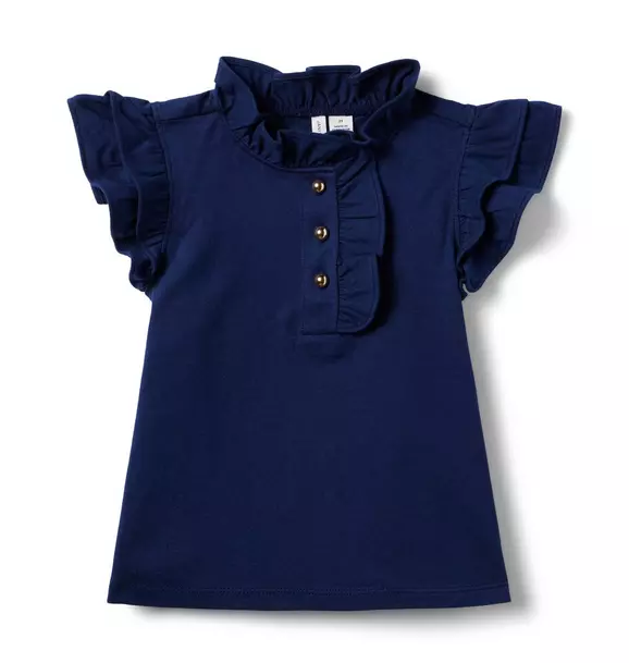 - All the ruffles for our soft jersey top, from the double ruffle sleeves to the ruffle collar. Plus, gold-tone buttons for the finishing touch.