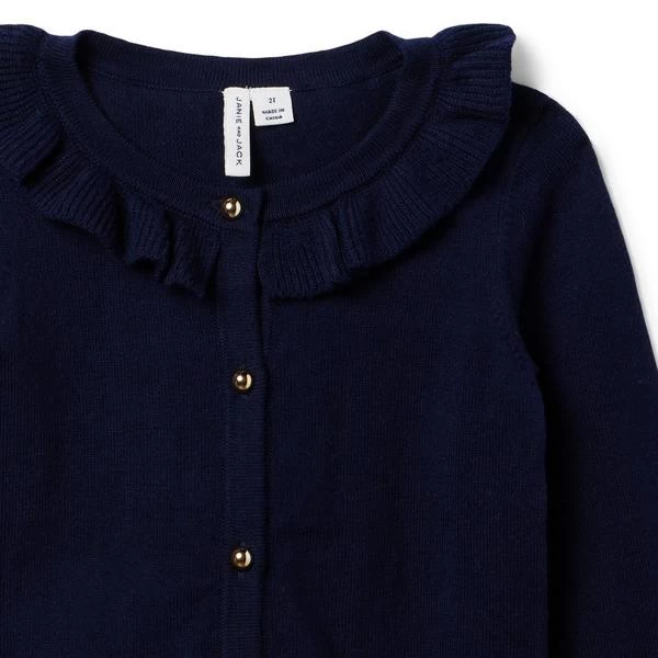 - A goes-with-everything layer that brings the frills with a ruffle collar and gold-tone buttons. Perfect for brunch dates or anywhere the day takes them.